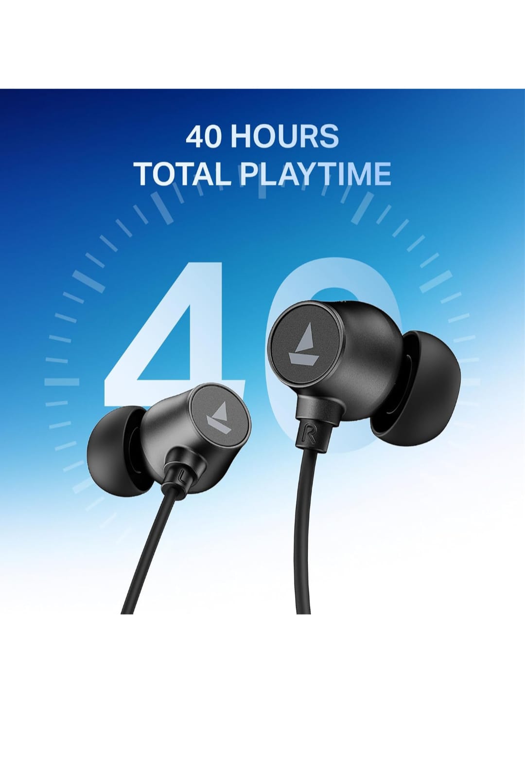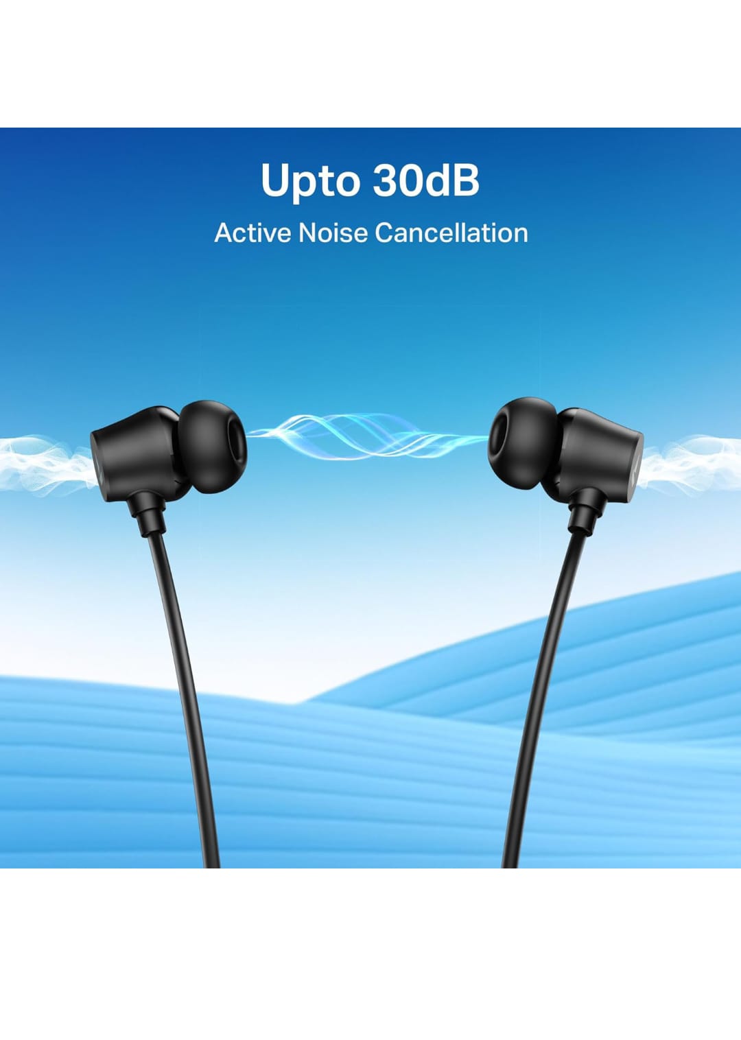 The neckband features Active Noise Cancellation up to 30 dB, reducing background noise for a distraction-free listening experience.  Enjoy up to 40 hours of music playback in normal mode and about 28 hours with ANC enabled, perfect for long listening sessions.